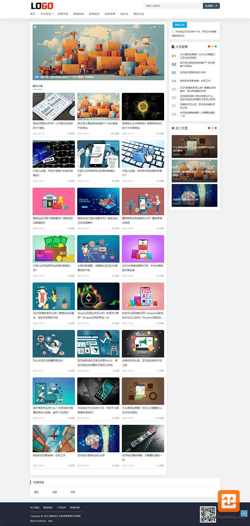 PbootCMS内核开发的网站模板,该模板适用于博客新闻网站、跨境电商博客网站等企业,当然其他行业也可以做,只需要把文字图片换成其他行业的即可;