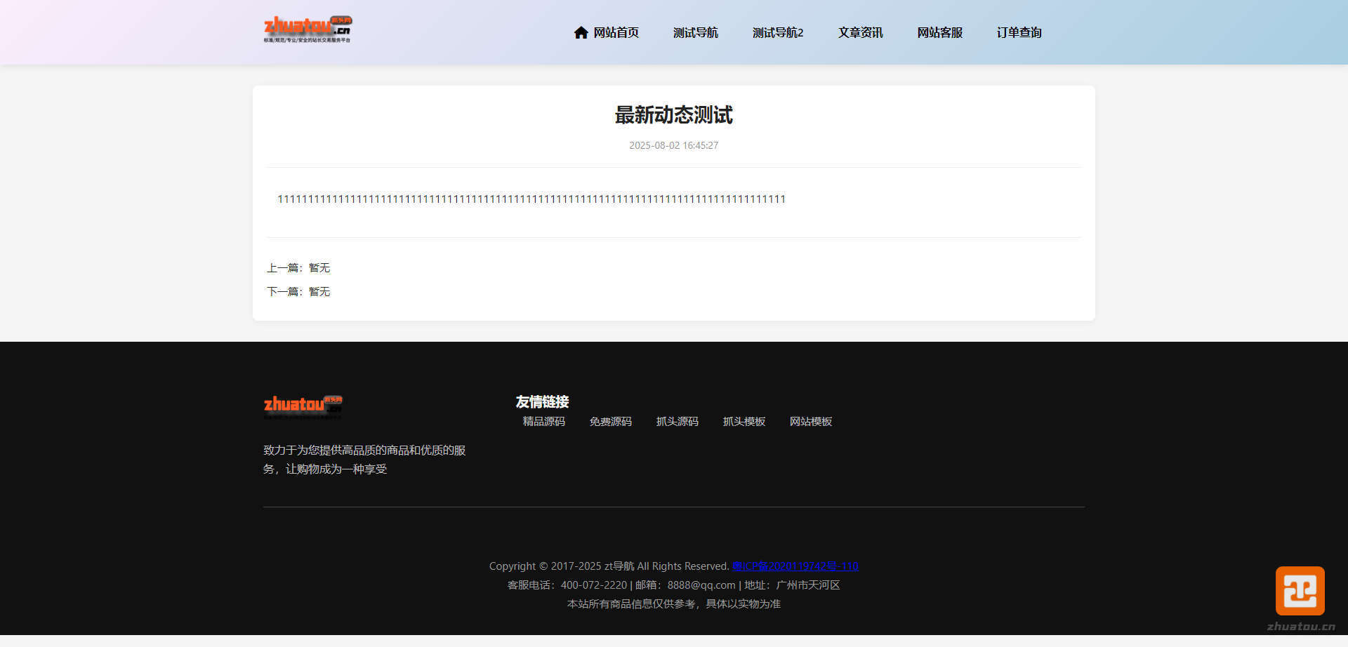 演示站为单页 没有后台和内页 只展示首页